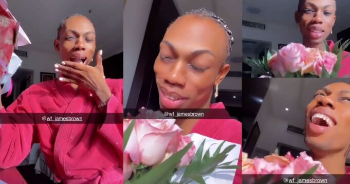 Crossdresser, James Brown, has taken to social media to show off the bouquet of flowers he received from a male admirer.