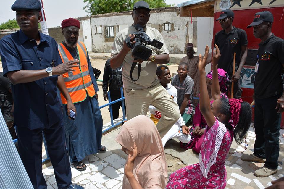 Pictures have emerged showing the moment security operatives raided a guest house in Galadima area in Maiduguri, Borno state before its demolition yesterday. Some prostitutes who were with their customers – were reportedly arrested in the course of the raid.