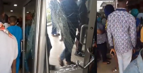 A video showed the moment how customers, while struggling to gain access into a bank in Ogba, Lagos, eventually broke down the door to the entrance of the bank leaving the building vulnerable to intruders.