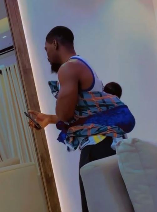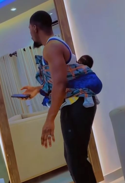 In the video, Tobi, who backed Malik with a wrapper and a shawl like a “pro”, is also seen displaying some gentle moves like a typical Afican mum would do to make the baby enjoy his sleep on the back.