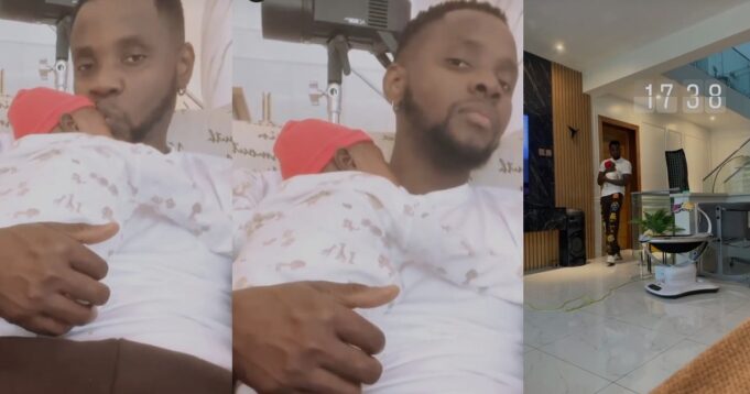Popular Nigerian singer, Kizz Daniel has warmed the hearts of his fans and followers as he shares videos of himself rendering daddy duties to his twin babies.