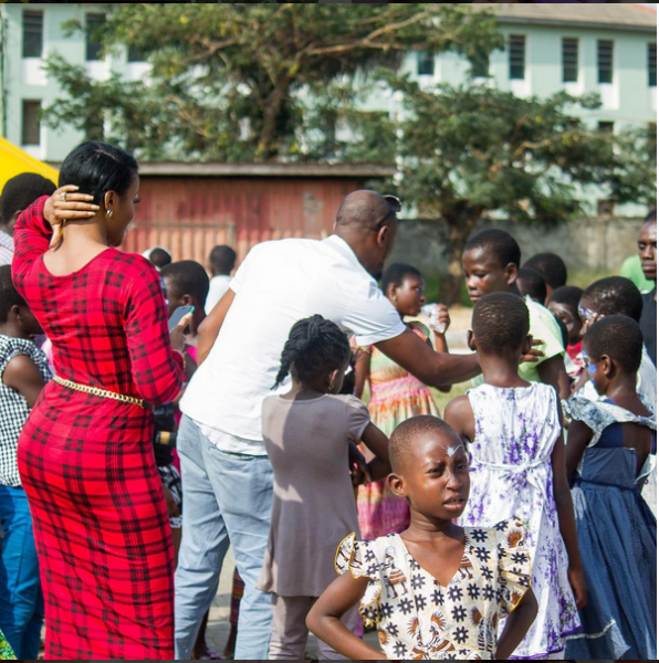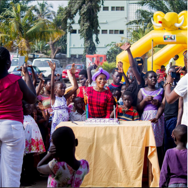 She shared photos from the event on social media and captioned one of the photos with ‘Our Baby Brian is one! Osu children’s home, Accra.’