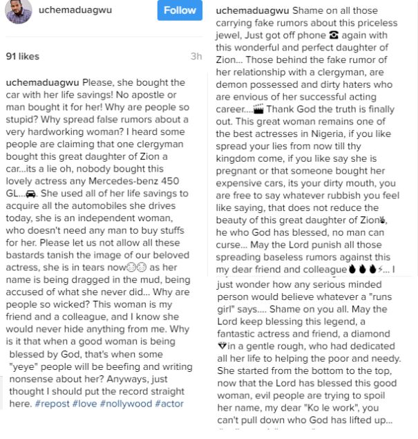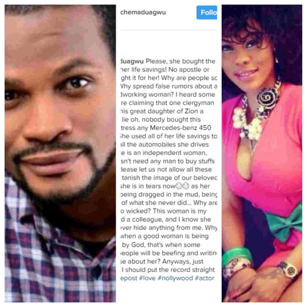 Controversial Nollywood actor, Uche Maduagwu, has come for those accusing Nollywood actress, Daniella Okeke of having an affair with the founder of Omega Power Ministries, Apostle Suleiman, an affair they say reportedly got her a $76,000 brand-new Mercedes-Benz 450 GL.