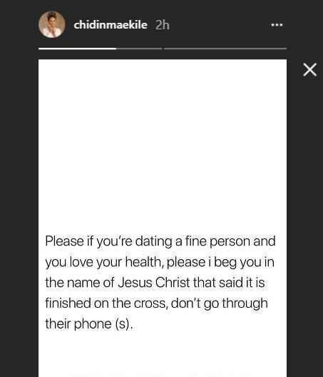 please if you are dating a fine person and you love your health, please I beg you in the name of Jesus Christ that said ‘it is finished’ on the cross, don’t go through their phone(s)’.
