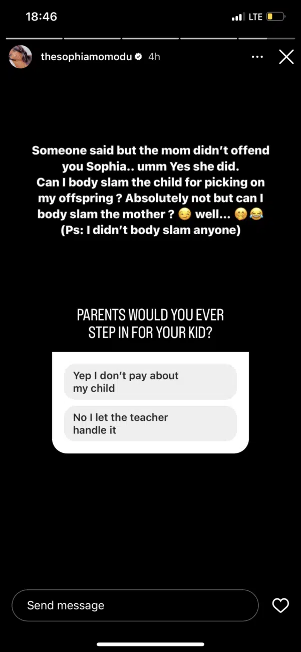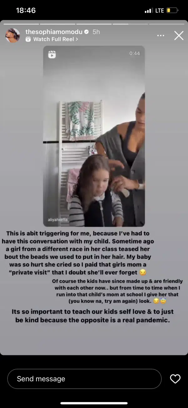 Nigerian businesswoman and socialite, Sophia Momodu, has revealed how she dealt with the traumatising event after she found out her daughter, Imade Adeleke, was teased over her hair beads.