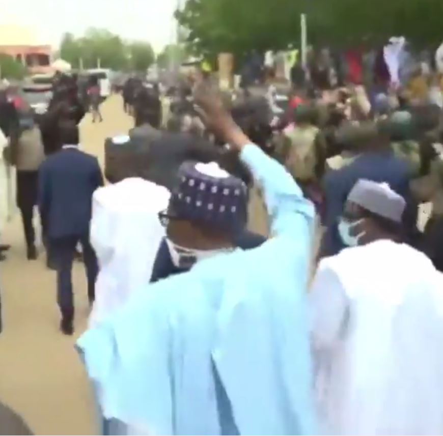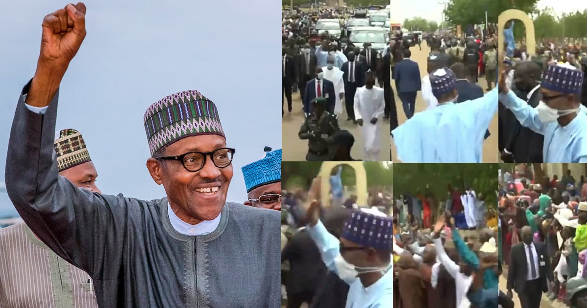 Watch video showing the moment residents file out to greet President Buhari after the Sallah payers below,