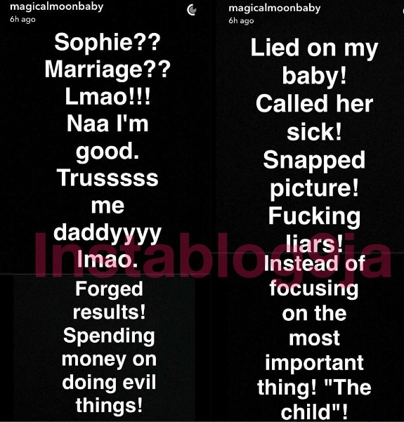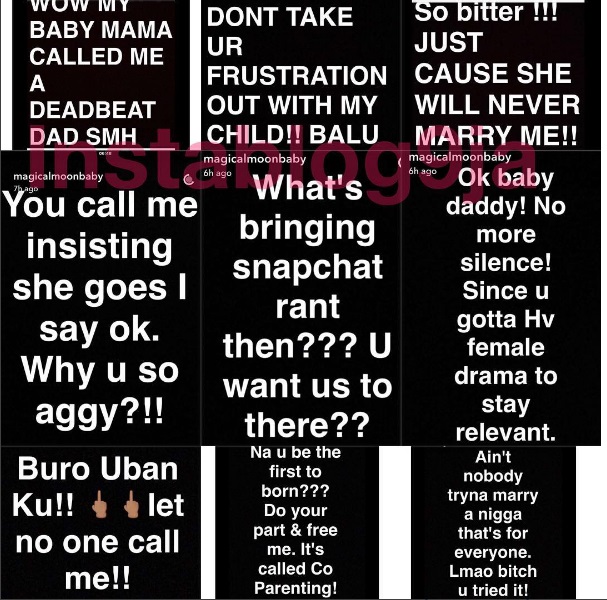 “Wow, my babymama just called me a deadbeat dad. Smh,” the singer shared on SnapChat yesterday, adding, “So bitter just cause she will never marry me. Don’t take ur frustrations out with my child.”