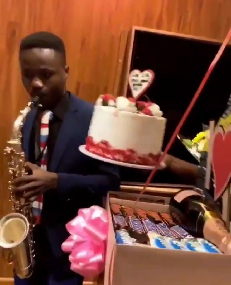 The singer arranged for some music to be played as a surprise for her with gifts of cakes and other snacks. Chioma who was visibly surprised was seen blushing as she got into an embrace with her boyfriend.