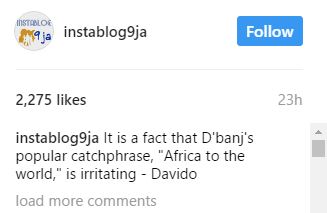 “It is a fact that D’banj’s popular catchphrase, “Africa to the world,” is irritating – Davido”