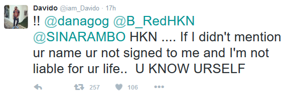 The 23 year old last night tweeted couple of tweets that suggested he had kicked out one of his artistes, Ghanaian singer DeeKay from his label.