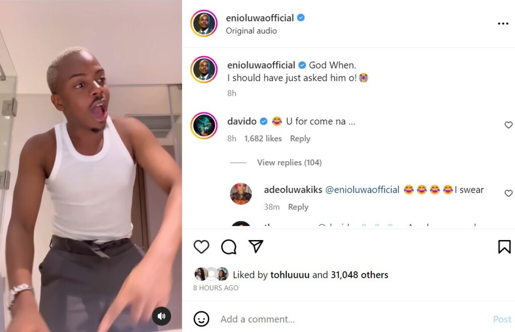 Popular Nigerian singer, Davido has reacted after influencer, Enioluwa, complained bitterly about not having the foresight to ask to accompany his private jet to Botswana.