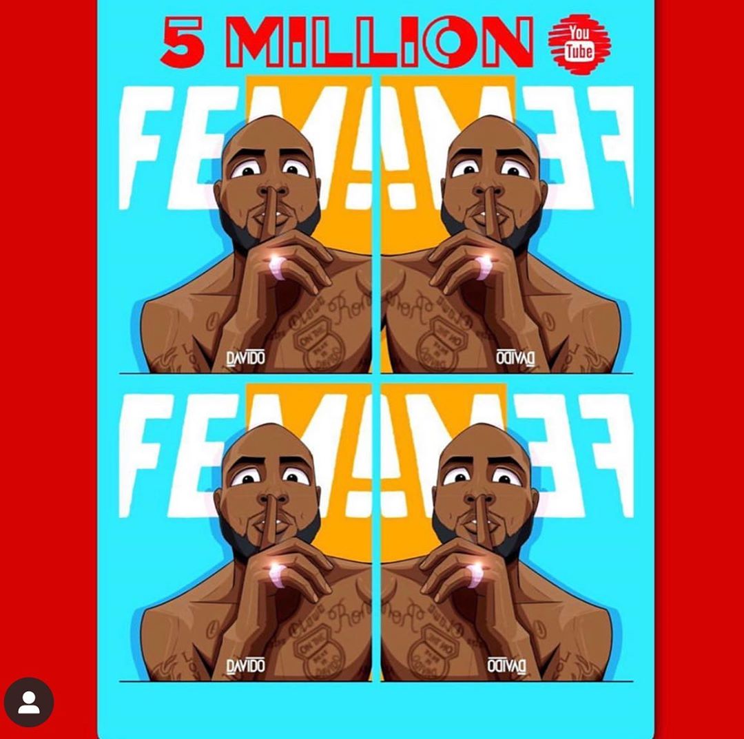 Popular Nigerian artiste, Davido has taken to his social media page to appreciate his fans for their support, as his newly released single “FEM” hits over 5 million views on YouTube.