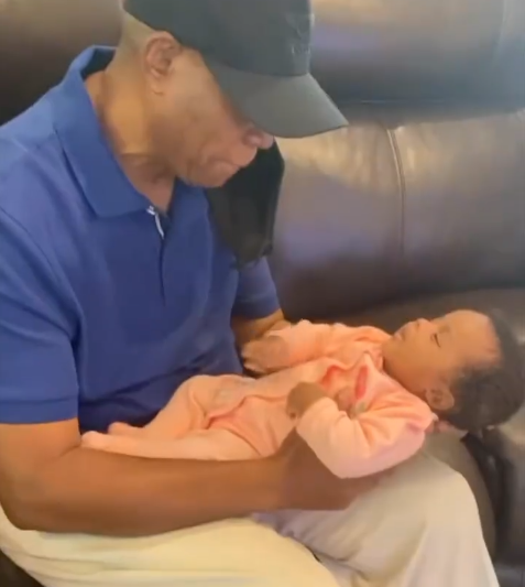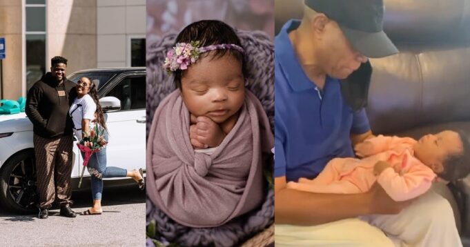 In the new video he shared, his father, Adedeji is seen holding his granddaughter in his arms and playing with her. It was all heartwarming laughter as the infant, (Oluwayemisi) smiled at him.