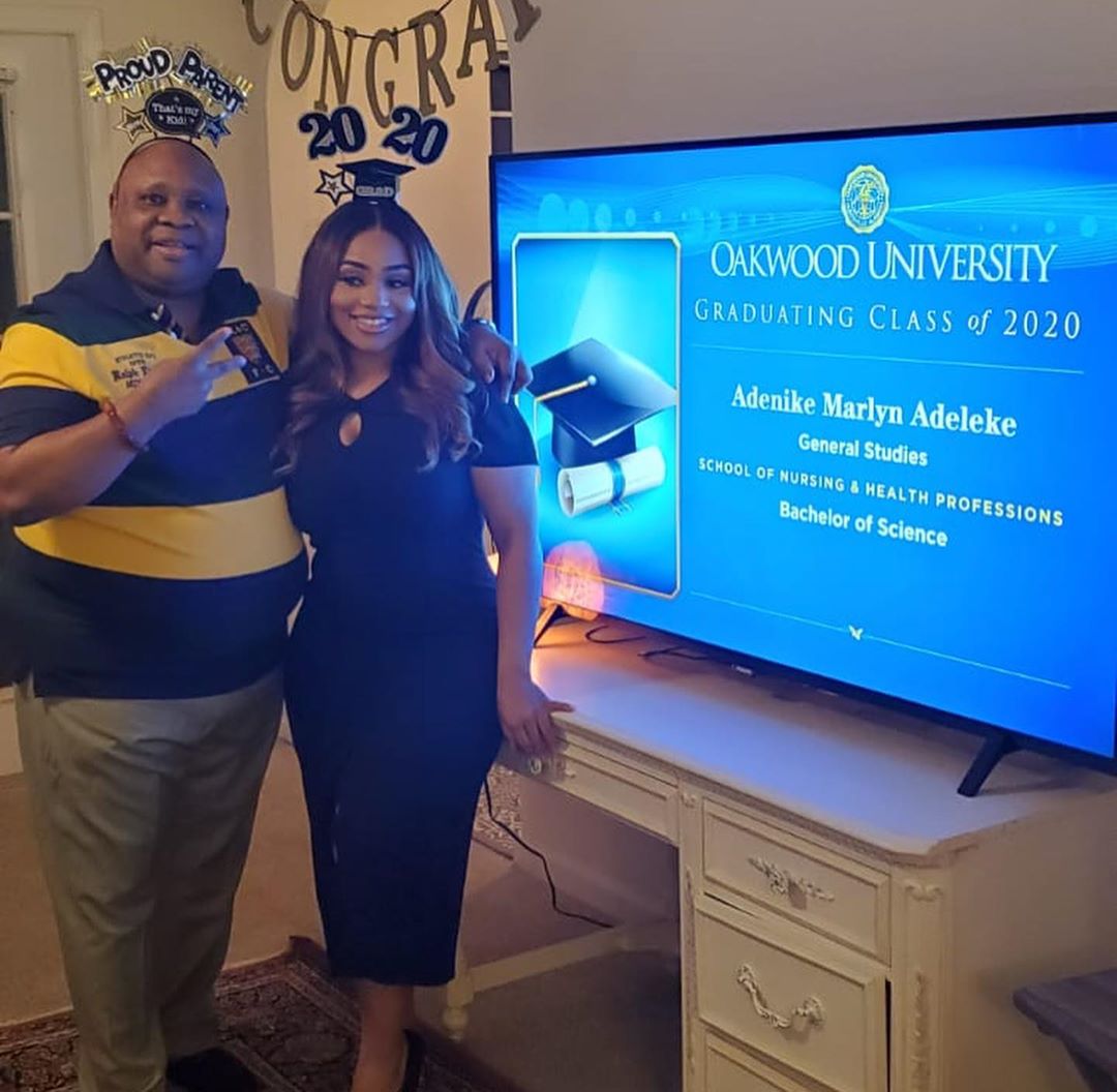 Adenike, 25, graduated from Oak-wood university in Huntsville, Alabama, United States, in May of 2020, and had an in-house celebration with few family and friends.