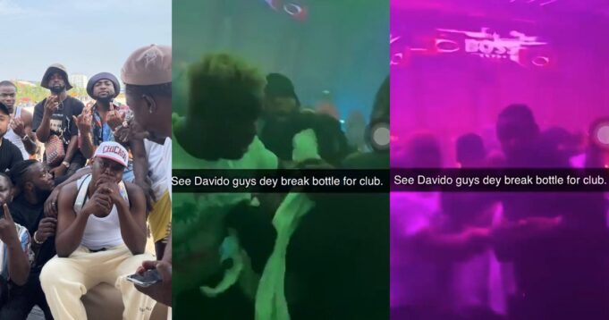 This happened at a club in Dubai. Some patrons got to the club and ordered a lot of drinks. Davido got in and ordered just one Azul and Don Julio. Then these guys bought more drinks and brought out their phones to record. The club’s bouncer approached them and askd them to stop recording sating Davido didn’t like it. An argument ensued and a fight broke out between Davido’s crew and these patrons. One of the patrons collapsed after a bottle was planted on his head. The police intervened but some of the female club goers created a scene outside the club as they claimed Davido’s gathered men seized their phones for recording the fight.