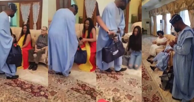 One of the highlights of the ceremony was the moment Sina Rambo’s billionaire uncle, Adedeji Adeleke who is Davido’s father, gifted his inlaws hefty bags of money.