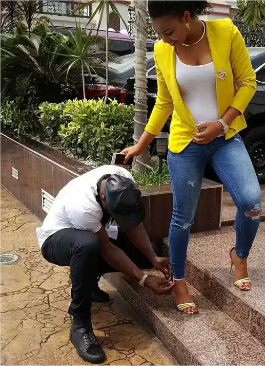 The singer shared the above photo buckling his girlfriend sandals, but later deleted it on his instagram page.