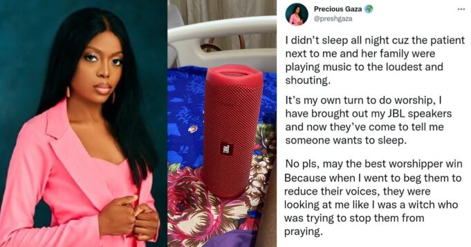 Sickle cell warrior, Precious Gaza has narrated how she dealt with a fellow patient who disrupted her sleep with loud prayers at night.