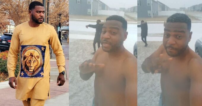 Speaking in a video he shared on his Instagram page on Sunday, January 23, the actor who was bare-chested in the snow, advised Nigerians to relocate to any country they desire.