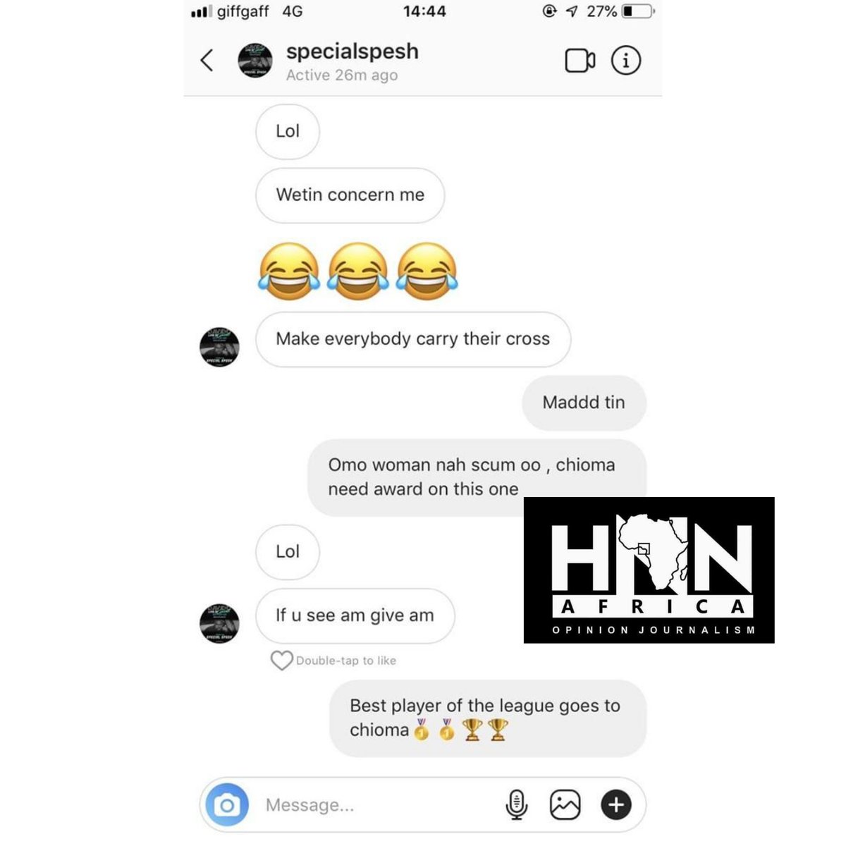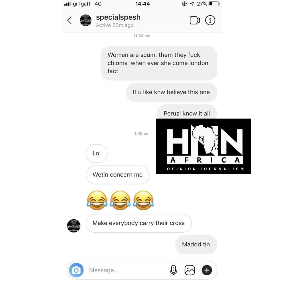 This information is courtesy of the screenshot of a chat which was shared by controversial Nigerian investigative journalist, Kemi Olunloyo.