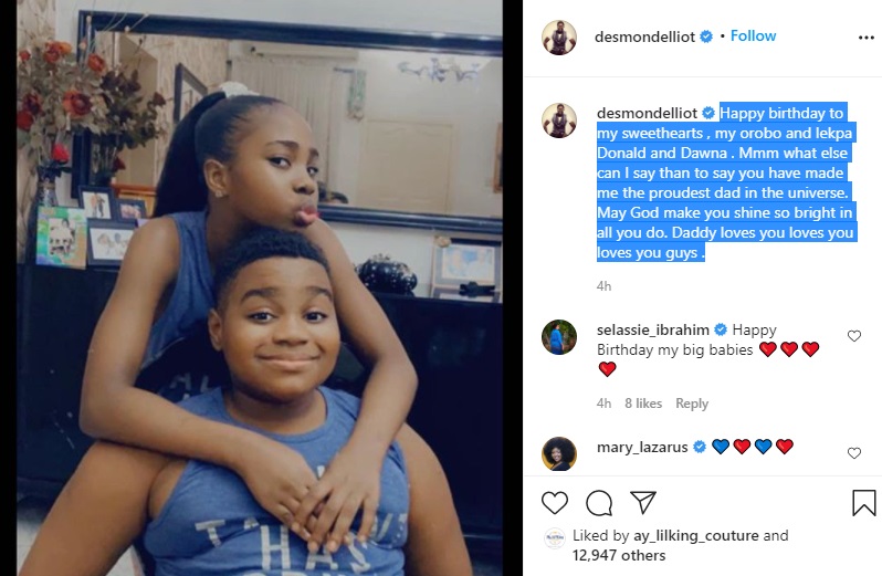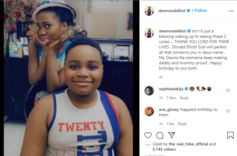 Nigerian actor and politician, Desmond Elliot, has taken to social media to celebrate his lovely twins on their 10th birthday.