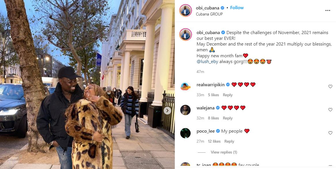 “Despite the challenges of November, 2021 remains our best year EVER! May December and the rest of the year 2021 multiply our blessings, amen 🙏 Happy new month fam❤️ @lush_eby always gorg!!!😍😍😍👅”.