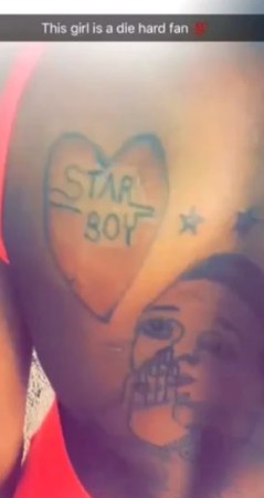 She saw a tattoo of Wizkid and his Starboy label tattooed at the back of the said lady.