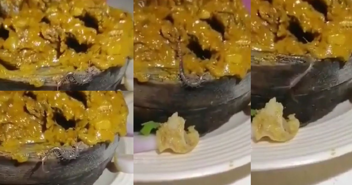 Diners at a popular restaurant in Lagos state were left disappointed after spotting a live centipede crawling inside the bowl of Isi ewu (goat head) they ordered.