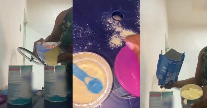 The new mother could be seen refilling the tins of baby formula with an unsuitable dairy product harmful to the baby’s digestive system. The woman noted that she often improvised with another product after receiving money.