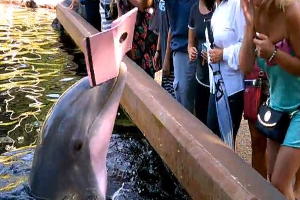 This is the quite hilarious moment a dolphin, obviously fed up of posing for photos, decided to snatch a woman’s iPad out of her hands.