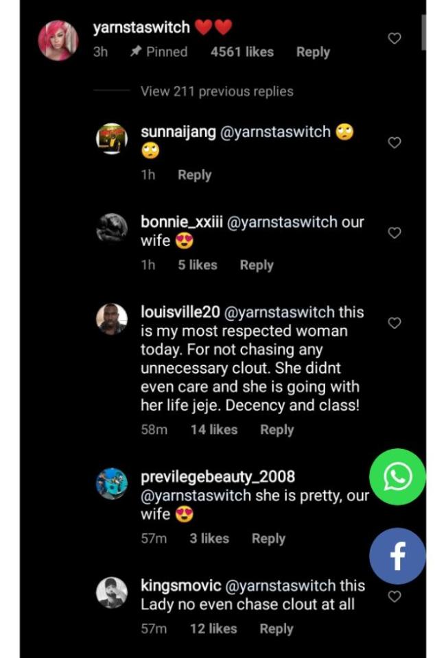His alleged ex-wife, Michelle with Instagram account reported to be hers, @yarnstaswitch has reacted to his revelation.