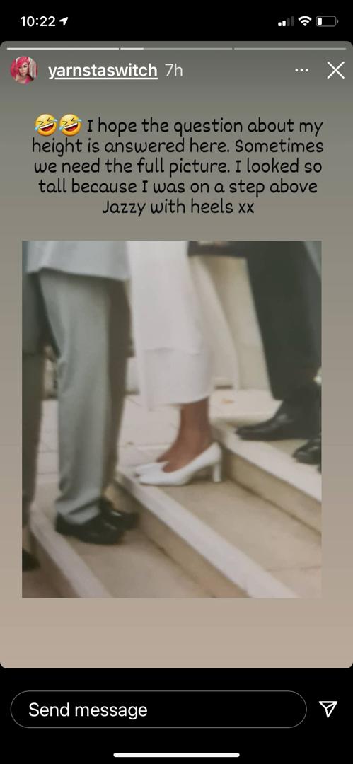 Michelle Jackson, the Ex-wife of Popular Nigerian Music Mogul, Don Jazzy, has opened up on why she looked taller than him in their wedding photo.