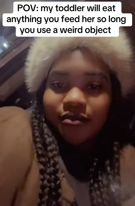 In a video she posted, she explained that her child is not particularly picky about food but insists on being fed with a specific and unusual object rather than a regular spoon.