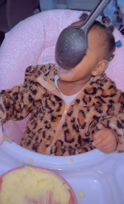 According to her, once she uses the item, the toddler eats calmly and finishes the meal without complaints. The video captured the toddler eating from a long spoon, mostly used to dish meals.