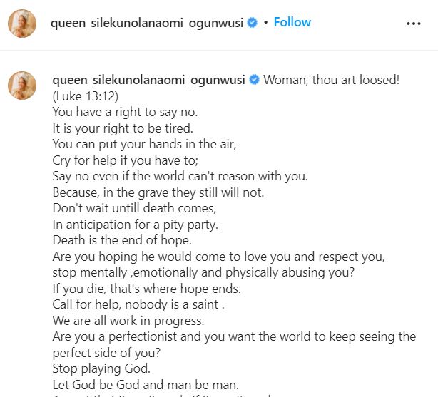 Evangelist Naomi Silekunola, the wife of the Ooni of Ife, Oba Adeyeye Ogunwusi Ojaja II, has paid a touching tribute to late gospel singer, Osinachi Nwachukwu.