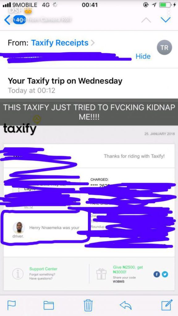 Delectable actress, Dorcas Shola Fapson (DSF) has revealed how she narrowly escaped being abducted and possibly raped by a Taxify driver in Lagos last night.