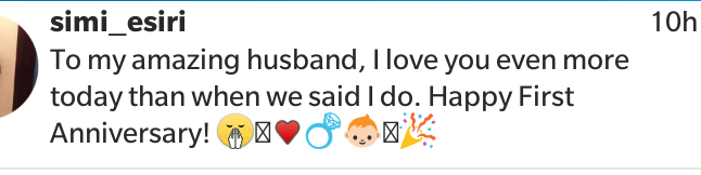 It’s been 12 months and I couldn’t be happier. Thank you @simi_esiri for completing me.”