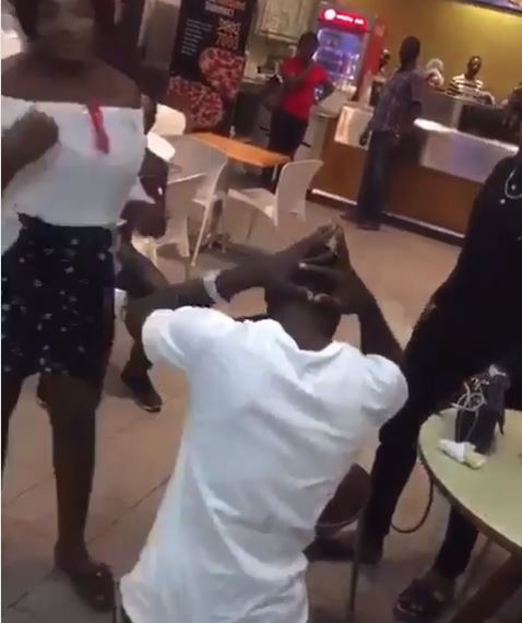 Putting his hands on his heads in dismay, the gentleman is seen begging the lady as onlookers ask her to say ‘yes’ while the photographer who was meant to capture the lovely moment continued with his job regardless of the situation on ground.