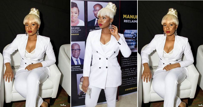 The beautiful self acclaimed Mama Africa who rocked an all white outfit with a platinum wig, disclosed that she couldn’t fit into the dress because of what she referred to as “Many Blessings she’s carrying behind her.”