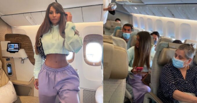 She posed in the business class cabin before the flight took off and posted on Instagram with the caption, “Next stop – Monaco,” unfortunately another passenger who was on the same flight took a photo of El Hilmer on her seat with other passengers in economy and shared online, exposing her.