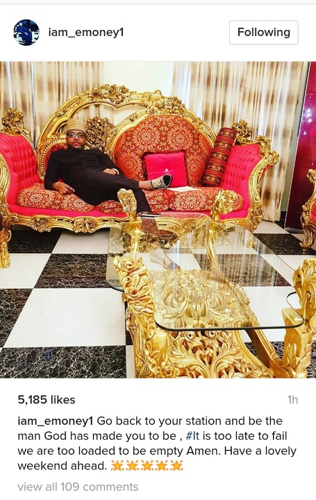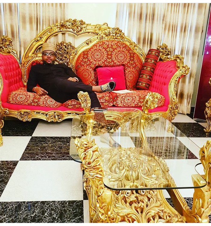 He who had once boasted that God has so much blessed him that he can never be poor in this life ever again took to his IG to further prove his statement as he shows off his golden themed sitting room which left admirers jaw dropped.