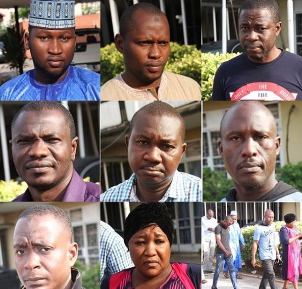 The suspects are: Babagana Zannah, who claimed to be the owner of the raw gold bars; Ahmed Hamza Mannir; Manasseh Auta; Dahiru Habib Bali; Isa Umaru Ammani; Ajakaye Oladipo; Bamanja Jonah Samuel and Lasisi Aisha.