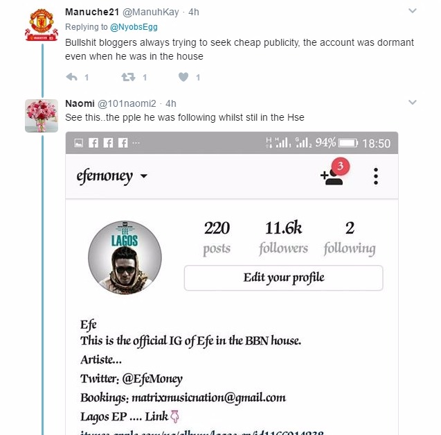 The report is untrue. Efe in a chat with Pulse TV this afternoon has revealed that he hasn’t touched his phone since his arrival to Nigeria from South Africa, thus he doesn’t know what is happening on Social Media.