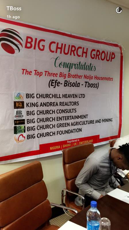 Churchill specially welcomed the Top 3 ex-housemates, Bisola, Efe and TBoss at his office where they had a round-table meeting.