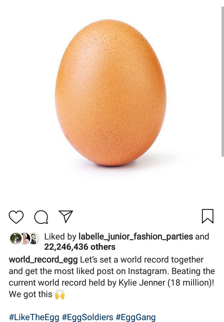 A photo of the egg was shared to Instagram on January 4, 2019, and as at yesterday, Sunday January, 13, it had amassed 18 million likes.