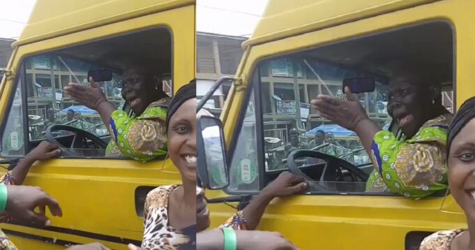 A Nigerian senior citizen has gone viral on social media after she was filmed hijacking a commercial bus following a hot exchange with the bus driver.
