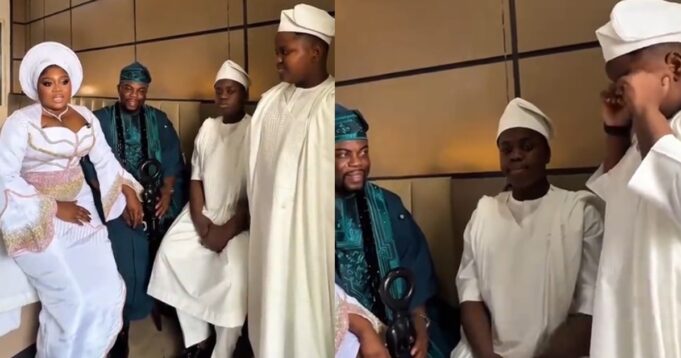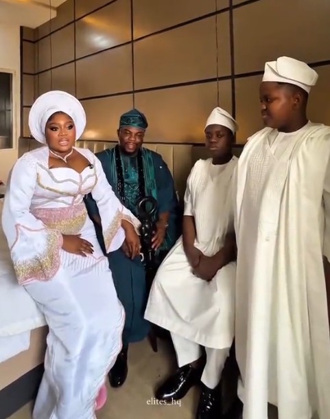 The video showed the bride and her husband with his two sons as she shared how she feels about starting her marital journey. She acknowledged that the family was sacred because there was an existing bond before her presence.