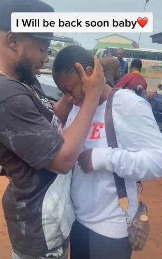 A touching farewell moment between a Nigerian lady and her partner, who was departing for another country, is captured in a viral video.