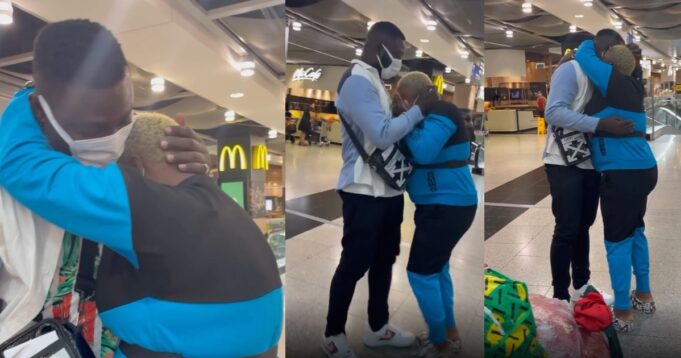 In the video, Olaide got emotional upon seeing her husband in flesh and blood, and she broke into tears of Joy.