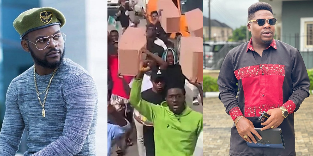 Popular Nigerian singer, Falz and ace comedian, Mr Macaroni, on Thursday morning, October 20, joined the #EndSARSmemorial procession at the Lekki Tollgate.
